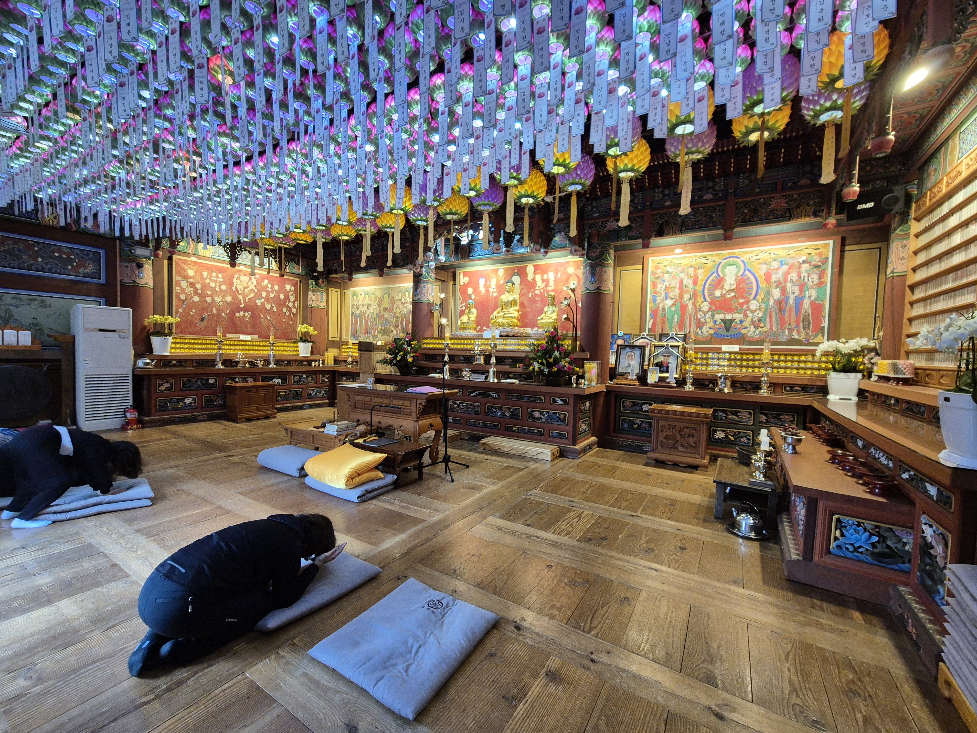 -석가모니불을 주불로 관세음 보살과 지장보살이 협시로 모셔진 평범한 사찰 구조에 중생들의 초파일 연등으로