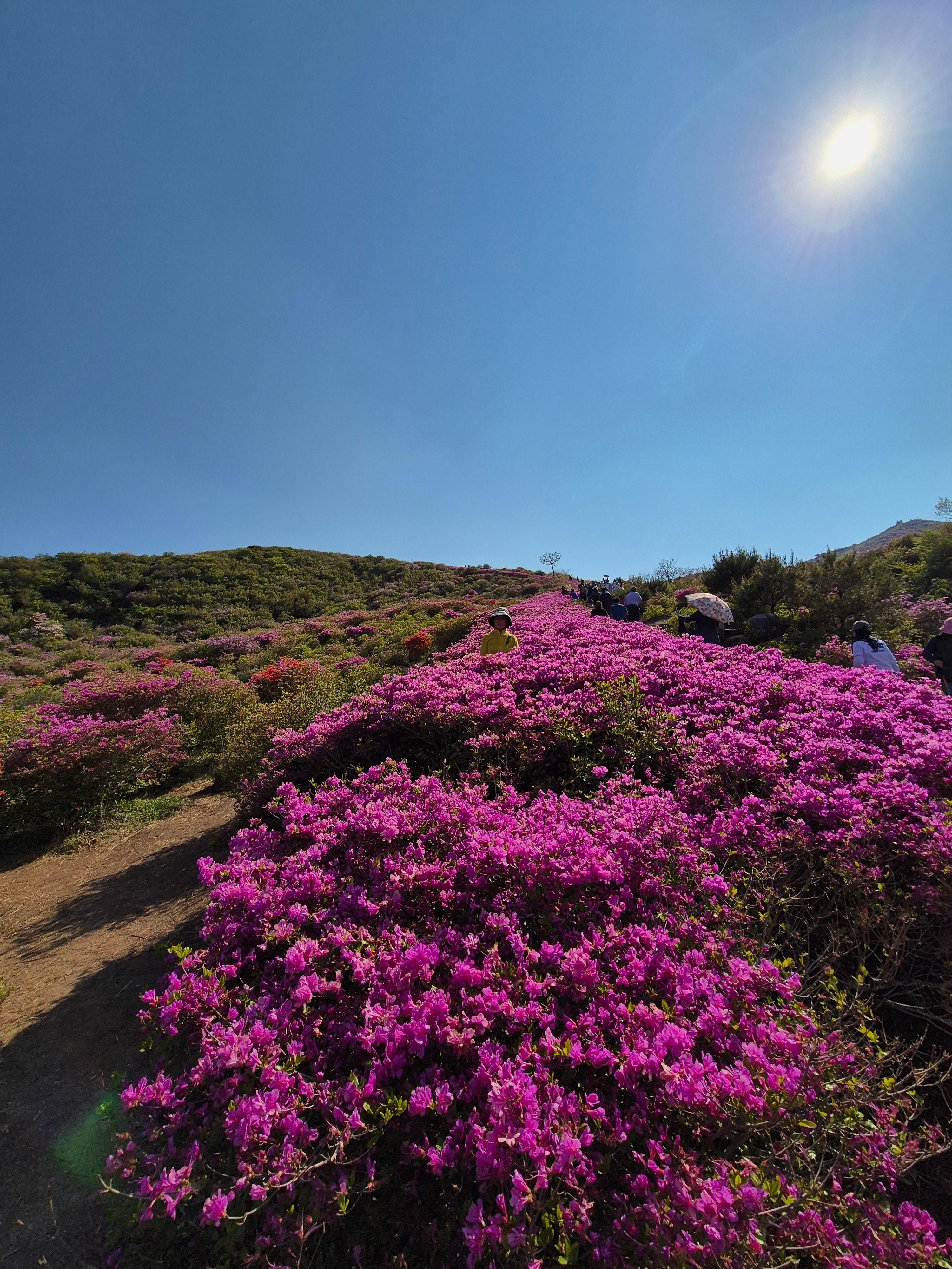 울긋불긋 꽃천지 속에서 사람들의 환호성인데 아내에게 저 철쭉의 색깔을 물었더니 학교 다닐 때 배운 색깔론이 나온다.
